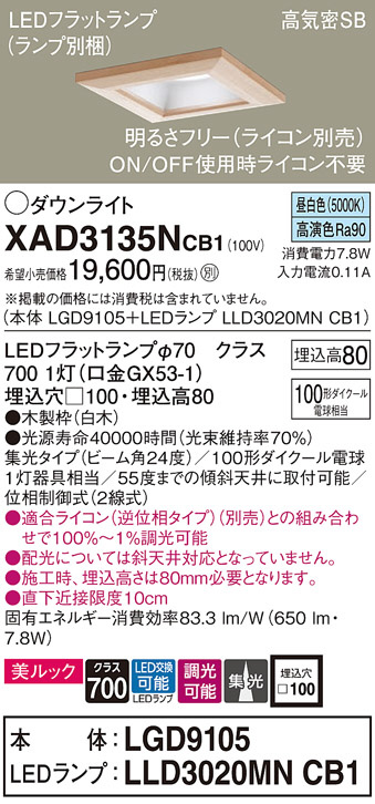 Panasonic ¥À¥¦¥ó¥é¥¤¥È XAD3135NCB1