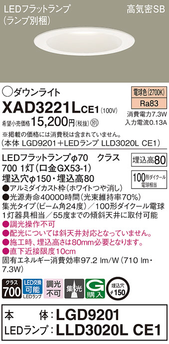 Panasonic ¥À¥¦¥ó¥é¥¤¥È XAD3221LCE1