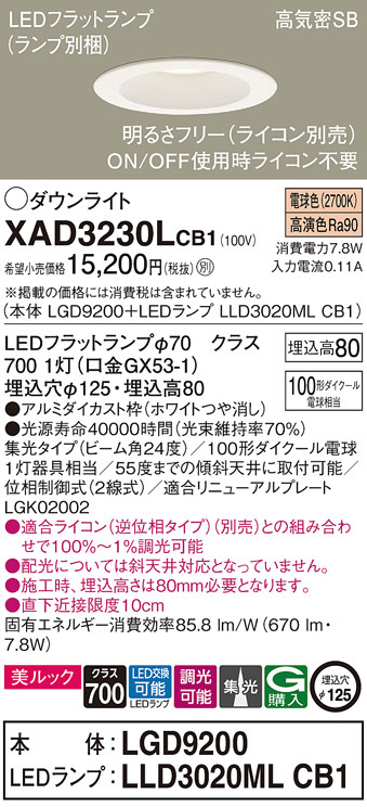 Panasonic ¥À¥¦¥ó¥é¥¤¥È XAD3230LCB1