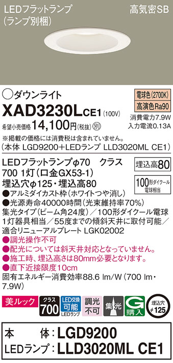 Panasonic ¥À¥¦¥ó¥é¥¤¥È XAD3230LCE1