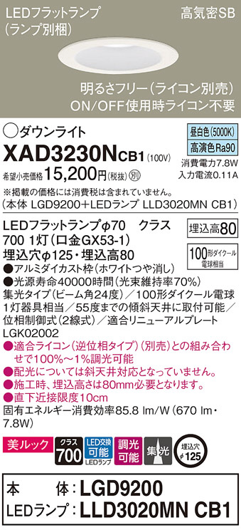 Panasonic ¥À¥¦¥ó¥é¥¤¥È XAD3230NCB1
