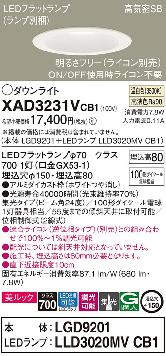 Panasonic ¥À¥¦¥ó¥é¥¤¥È XAD3231VCB1