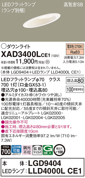 Panasonic ¥À¥¦¥ó¥é¥¤¥È XAD3400LCE1