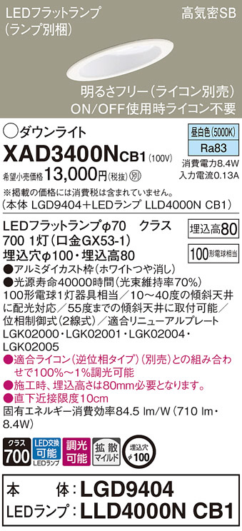 Panasonic ¥À¥¦¥ó¥é¥¤¥È XAD3400NCB1