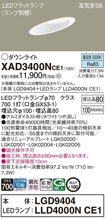 Panasonic ¥À¥¦¥ó¥é¥¤¥È XAD3400NCE1