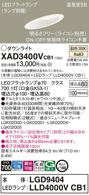 Panasonic ¥À¥¦¥ó¥é¥¤¥È XAD3400VCB1