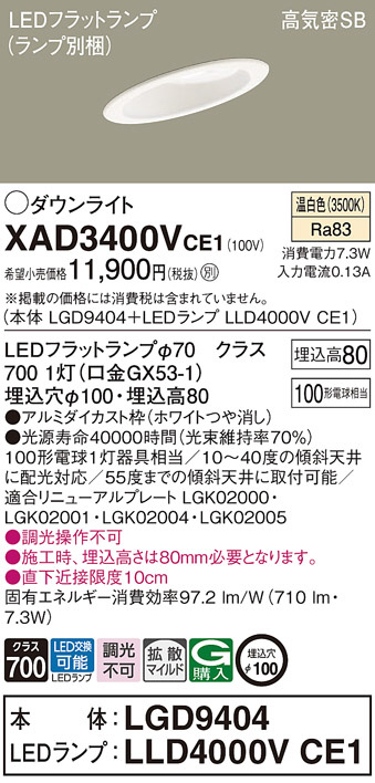 Panasonic ¥À¥¦¥ó¥é¥¤¥È XAD3400VCE1