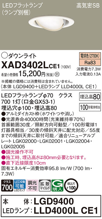 Panasonic ¥À¥¦¥ó¥é¥¤¥È XAD3402LCE1