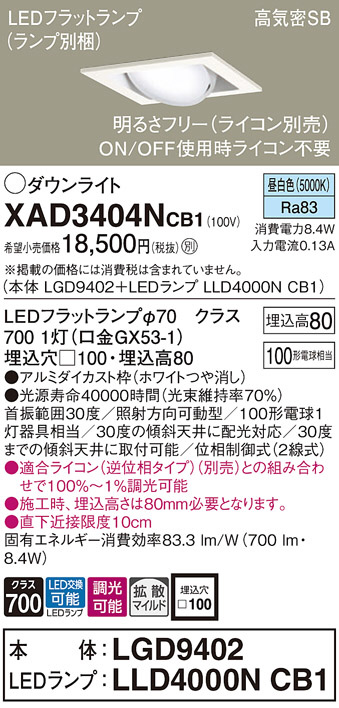 Panasonic ¥À¥¦¥ó¥é¥¤¥È XAD3404NCB1