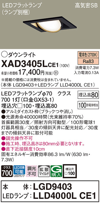 Panasonic ¥À¥¦¥ó¥é¥¤¥È XAD3405LCE1