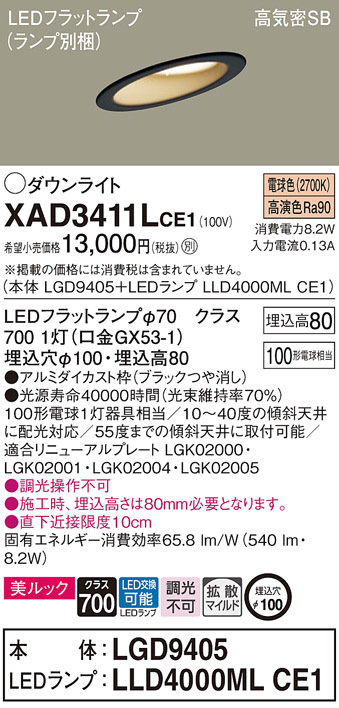 Panasonic ¥À¥¦¥ó¥é¥¤¥È XAD3411LCE1