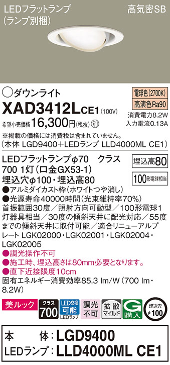 Panasonic ¥À¥¦¥ó¥é¥¤¥È XAD3412LCE1