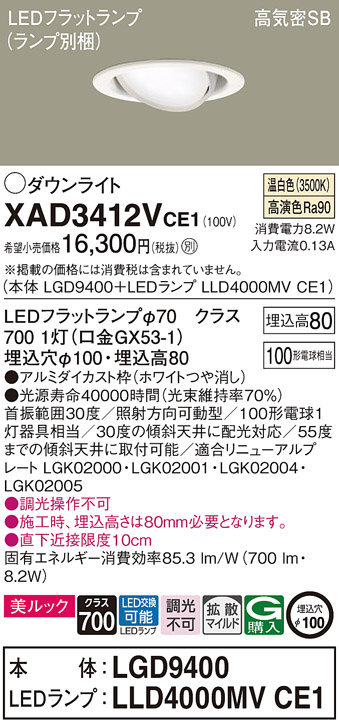 Panasonic ¥À¥¦¥ó¥é¥¤¥È XAD3412VCE1