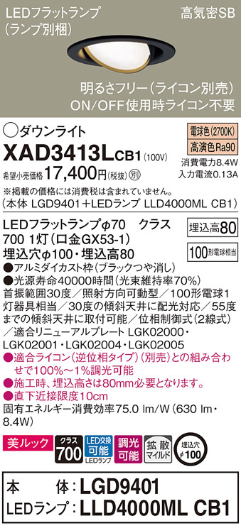 Panasonic ¥À¥¦¥ó¥é¥¤¥È XAD3413LCB1