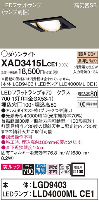 Panasonic ¥À¥¦¥ó¥é¥¤¥È XAD3415LCE1