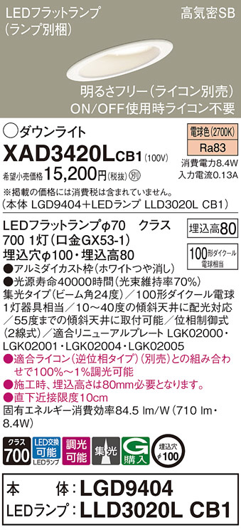 Panasonic ¥À¥¦¥ó¥é¥¤¥È XAD3420LCB1