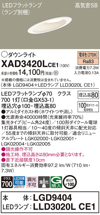 Panasonic ¥À¥¦¥ó¥é¥¤¥È XAD3420LCE1