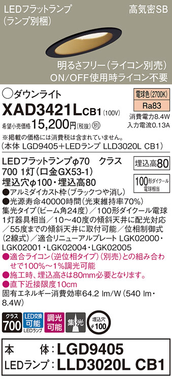 Panasonic ¥À¥¦¥ó¥é¥¤¥È XAD3421LCB1