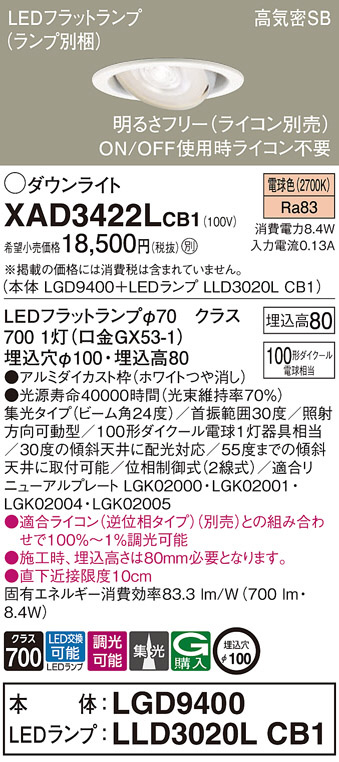 Panasonic ¥À¥¦¥ó¥é¥¤¥È XAD3422LCB1
