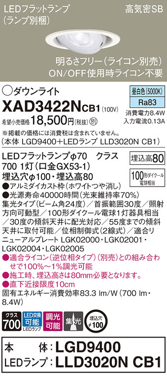 Panasonic ¥À¥¦¥ó¥é¥¤¥È XAD3422NCB1