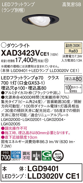 Panasonic ¥À¥¦¥ó¥é¥¤¥È XAD3423VCE1