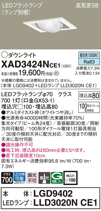 Panasonic ¥À¥¦¥ó¥é¥¤¥È XAD3424NCE1