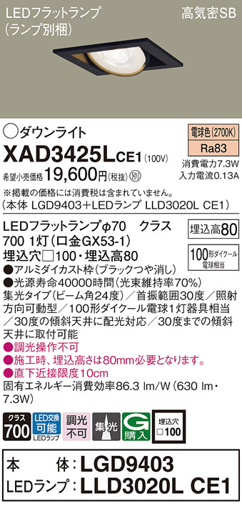 Panasonic ¥À¥¦¥ó¥é¥¤¥È XAD3425LCE1