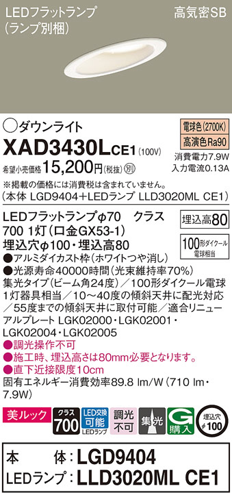 Panasonic ¥À¥¦¥ó¥é¥¤¥È XAD3430LCE1