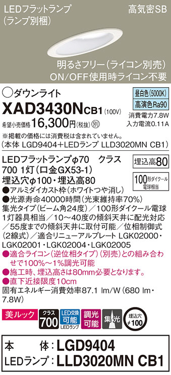 Panasonic ¥À¥¦¥ó¥é¥¤¥È XAD3430NCB1