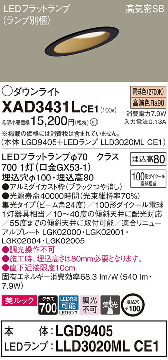 Panasonic ¥À¥¦¥ó¥é¥¤¥È XAD3431LCE1