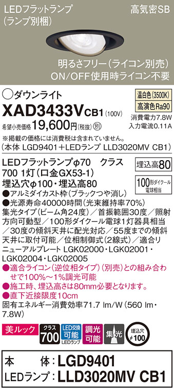 Panasonic ¥À¥¦¥ó¥é¥¤¥È XAD3433VCB1