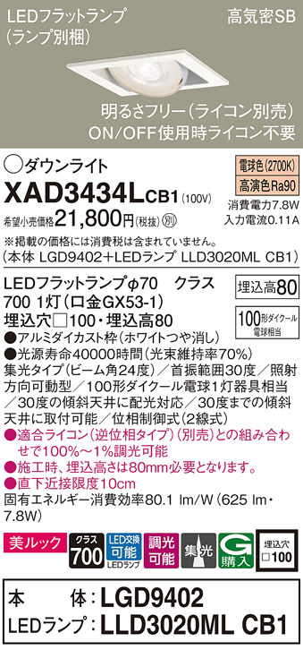 Panasonic ¥À¥¦¥ó¥é¥¤¥È XAD3434LCB1