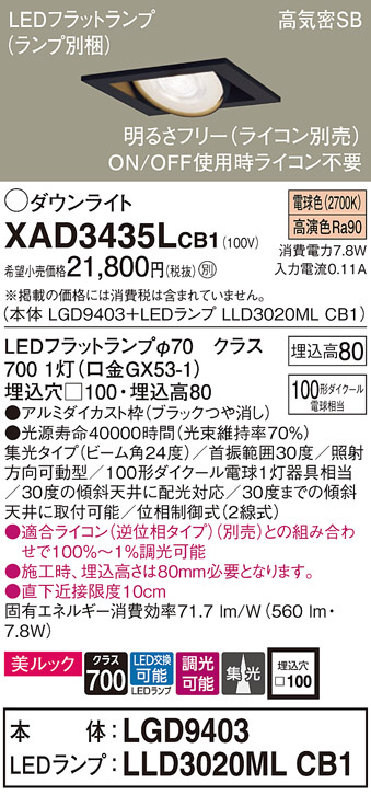 Panasonic ¥À¥¦¥ó¥é¥¤¥È XAD3435LCB1