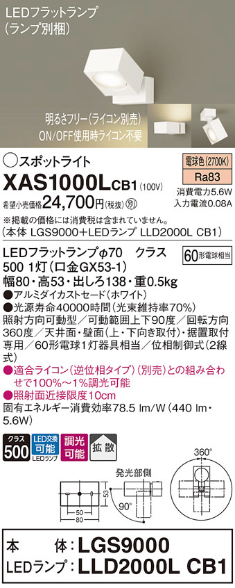 Panasonic ¥¹¥Ý¥Ã¥È¥é¥¤¥È XAS1000LCB1