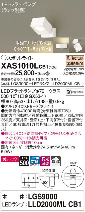 Panasonic ¥¹¥Ý¥Ã¥È¥é¥¤¥È XAS1010LCB1