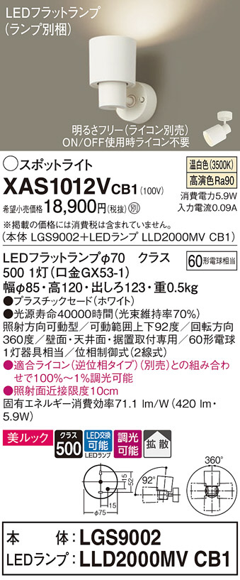 Panasonic ¥¹¥Ý¥Ã¥È¥é¥¤¥È XAS1012VCB1