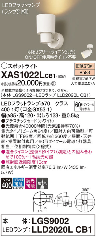 Panasonic ¥¹¥Ý¥Ã¥È¥é¥¤¥È XAS1022LCB1