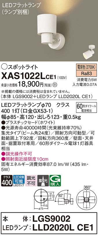 Panasonic ¥¹¥Ý¥Ã¥È¥é¥¤¥È XAS1022LCE1