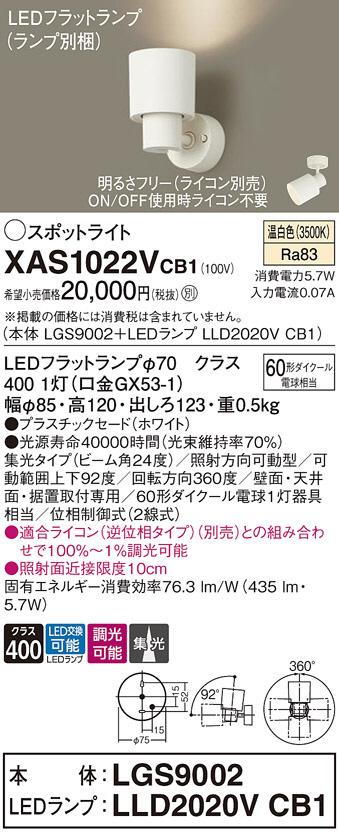Panasonic ¥¹¥Ý¥Ã¥È¥é¥¤¥È XAS1022VCB1