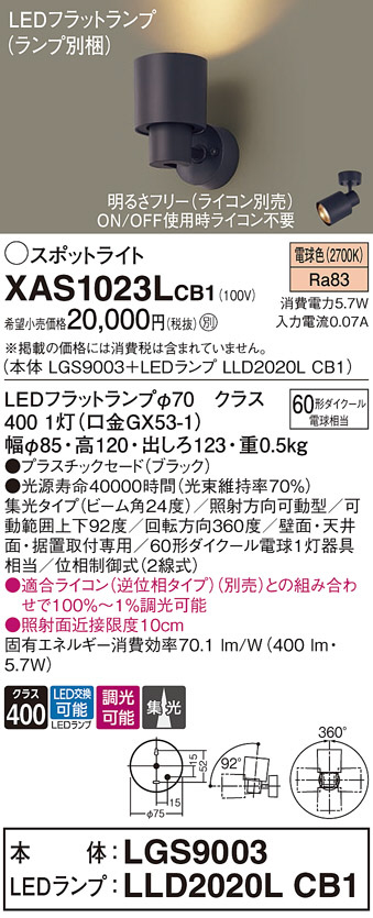 Panasonic ¥¹¥Ý¥Ã¥È¥é¥¤¥È XAS1023LCB1