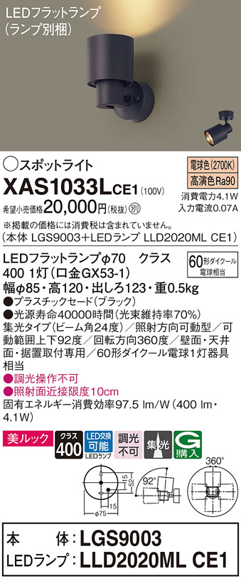 Panasonic ¥¹¥Ý¥Ã¥È¥é¥¤¥È XAS1033LCE1