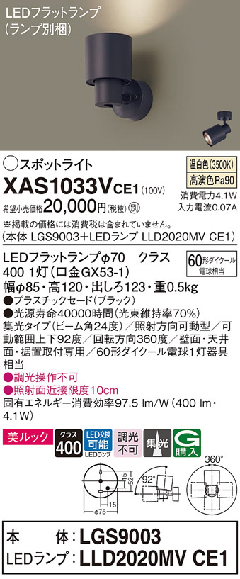 Panasonic ¥¹¥Ý¥Ã¥È¥é¥¤¥È XAS1033VCE1