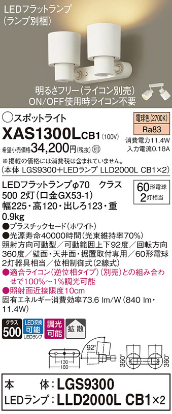 Panasonic ¥¹¥Ý¥Ã¥È¥é¥¤¥È XAS1300LCB1