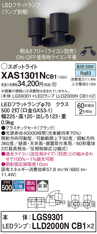 Panasonic ¥¹¥Ý¥Ã¥È¥é¥¤¥È XAS1301NCB1