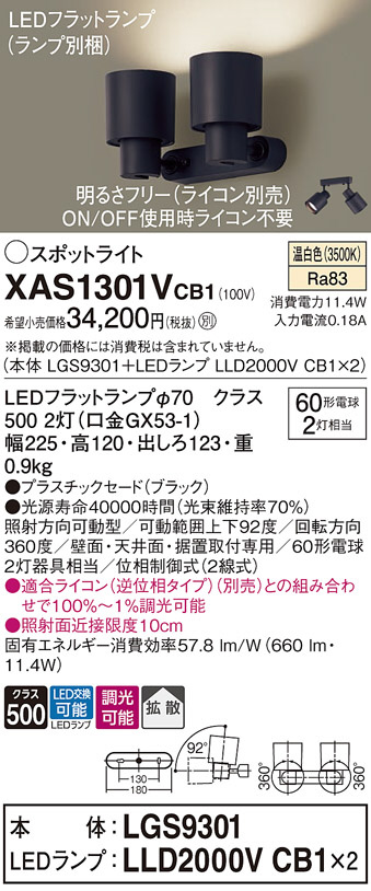 Panasonic ¥¹¥Ý¥Ã¥È¥é¥¤¥È XAS1301VCB1