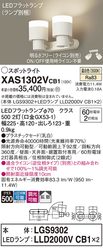 Panasonic ¥¹¥Ý¥Ã¥È¥é¥¤¥È XAS1302VCB1