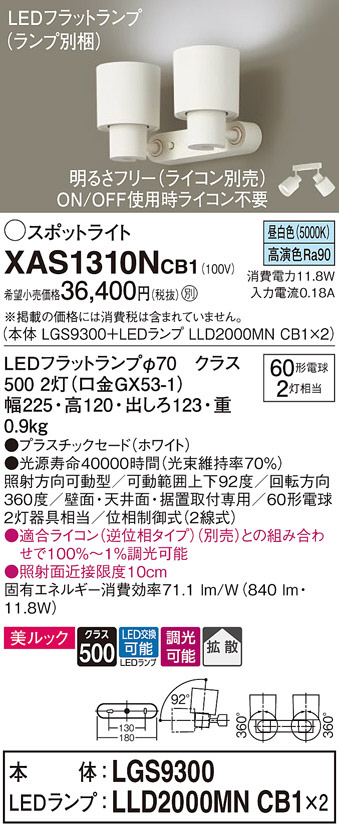 Panasonic ¥¹¥Ý¥Ã¥È¥é¥¤¥È XAS1310NCB1