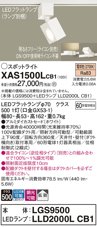 Panasonic ¥¹¥Ý¥Ã¥È¥é¥¤¥È XAS1500LCB1