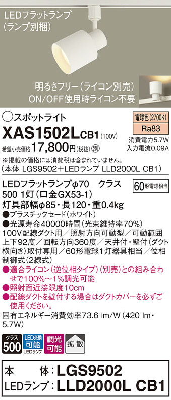 Panasonic ¥¹¥Ý¥Ã¥È¥é¥¤¥È XAS1502LCB1