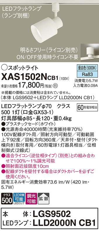Panasonic ¥¹¥Ý¥Ã¥È¥é¥¤¥È XAS1502NCB1